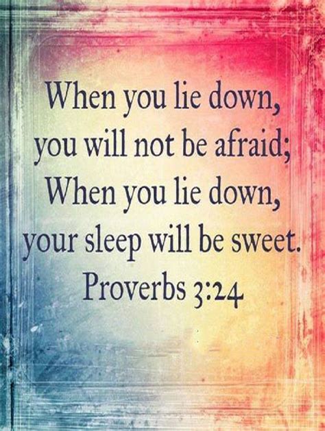 Proverbs 3:24 says, "When you lie down, you will not be afraid; when you lie down, your sleep will be sweet." This verse reminds us that God can give us peaceful sleep, even in the midst of our fears and anxieties. We can trust that he will protect us and keep us safe throughout the night.
